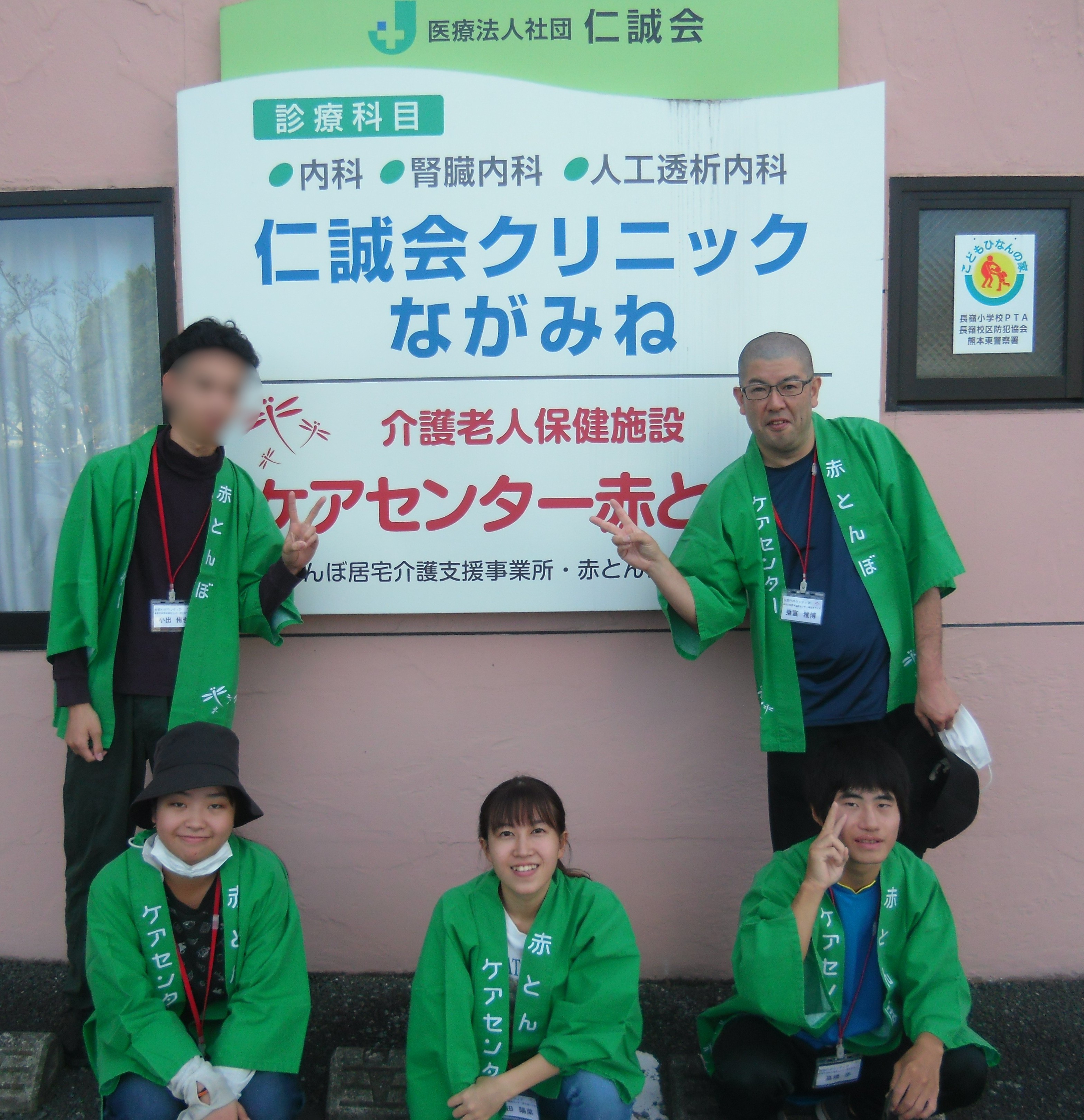 2025.10.26(日曜) 就労継続支援A型をご利用の5名の方と支援員1名にて医療法人社団 仁誠会様『介護老人保健施設 ケアセンター赤とんぼ』の秋祭りボランティアに行ってきました♪