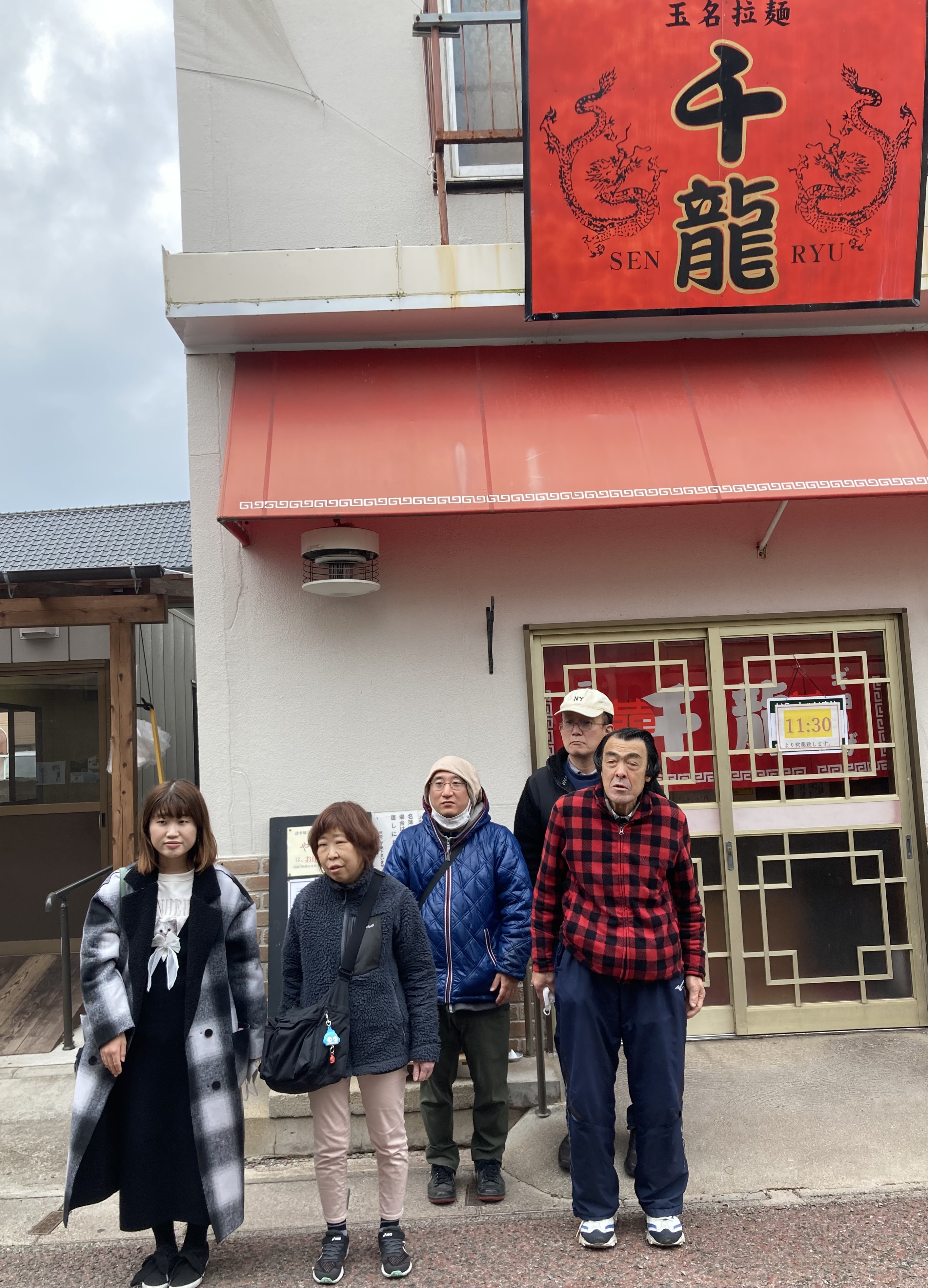 2月14日のA型の活動で、玉名ラーメンを食べよう!!第二弾ということで、玉名市高瀬にある「千龍」に行ってきました✨ 行列ができる人気店なので、約1時間前には到着し、名前を記入して待つことに、、、 待ち時間はお店の周辺を歩いて回りました。