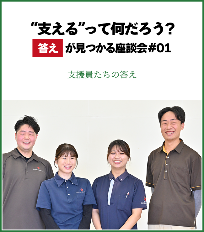 今回はそれぞれの事業所で「支援員」として働く同世代4名のリアルな話を聞いてみます。