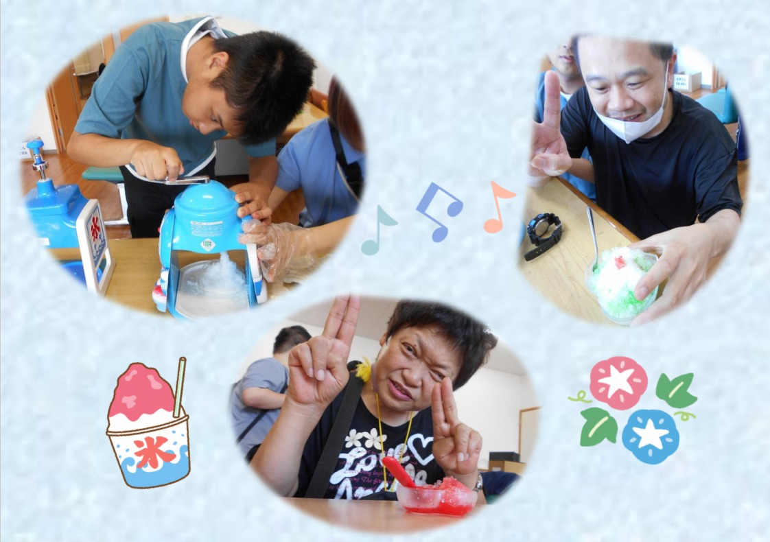 「つくるサークル」では、残暑の中「かき氷作り」の体験をしました♪ 初めての体験にワクワク! トッピングには「そだてるサークル」で育てたイチゴを凍らせて削りイチゴにして乗せました♪ 自分たちで作ったかき氷はなんだか特別な味がしました~(^O^)/