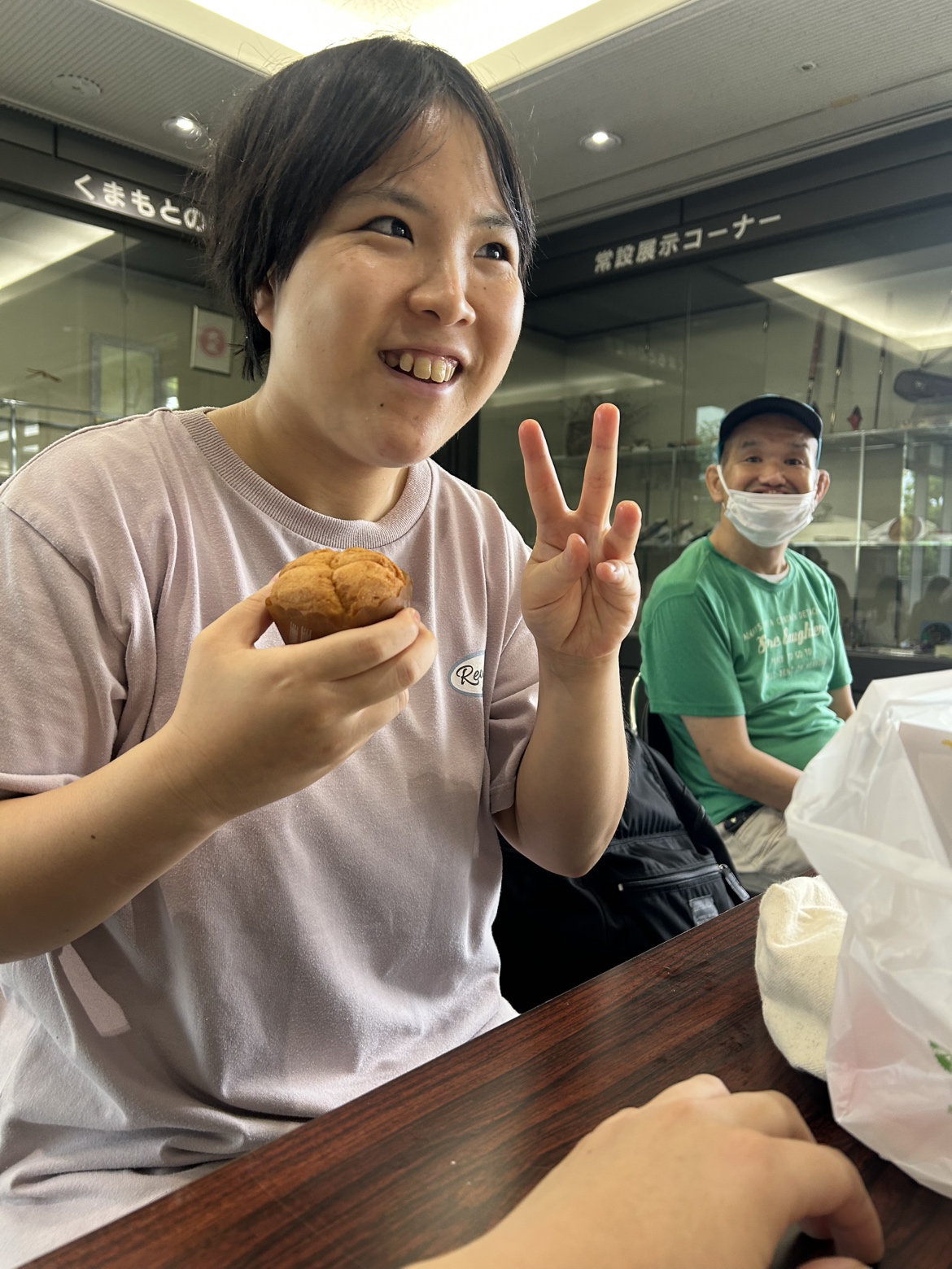午前中は熊本病院内の清掃作業を行い、職員食堂で昼食を食べた後、流通情報会館で開催された「流団まつり2025」に参加してきました! かがやきオリーブのパンやラスクを買ったり、外で行われていた「のりものふれあい広場」で実際にパトカーに乗ったりして楽しみました。 熊本病院から徒歩で移動したため、道中雨に降られるハプニングもありましたが、夏の終わりにお祭りの雰囲気を楽しむことができました。