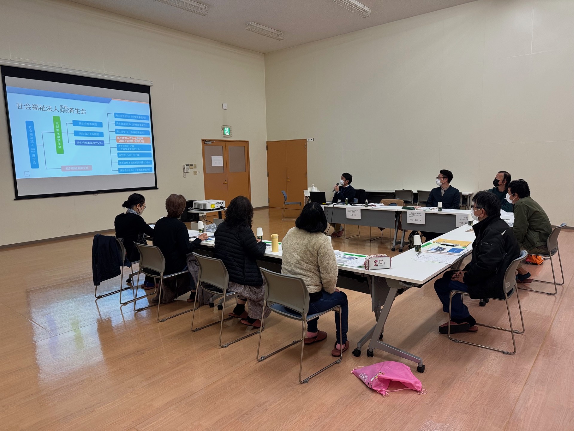 12月13日(土)午前9時から午前11時まで 済生会グループホーム事業所 地域連携推進会議(第1回)を開催しました。 入居系サービスを行う事業所では、障がいのある人の暮らしを「点」ではなく「地域全体」で支えるため、外部から地域の代表者や識者、入居者、事業所の代表者が集い“会議”と“現地訪問”を行うことで事業の透明性や質の担保をすることを目的としたもので、4月よりグループホーム並びに障がい者支援施設(入所型)で開催が義務化されたものです。
