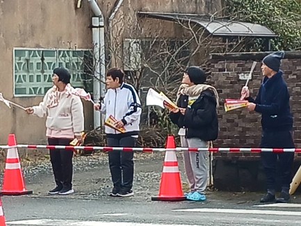 走っている支援員さんを見つけてびっくり。みんなで記念撮影をしました。