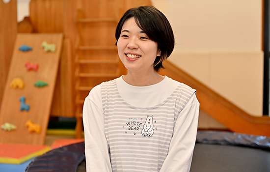 在籍していた大学の求人サイトで見て初めて児童発達支援センターの存在を知り、子どもにかかわる仕事に興味があった私は見学を申し込みました。施設内の朗らかな雰囲気、子どもと目線を合わせ真摯にかかわる先生方の姿、そして何より、安心できる時間を守られた子どもたちの楽しそうな姿が印象的で、ここで一緒に子どもとそのご家族のこれからを支えていきたいと思い、福祉センターを選びました。